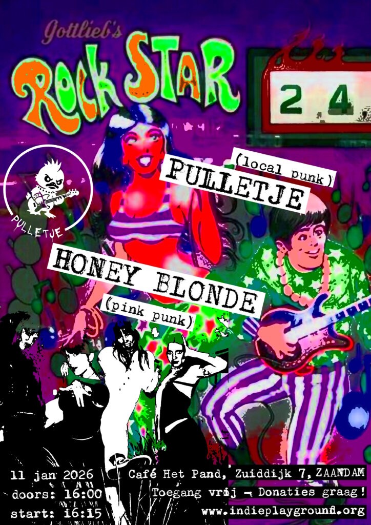 Pulletje is sinds 2025 Zaanstads lokale trots als het gaat om streetwise poetry punk. Drummer Mila, bassist Josefien en gitarist Morris rocken erop los terwijl zangeres Dottie Punt als stralend middelpunt laat zien dat Pulletje niet alleen om schattigheid gaat.