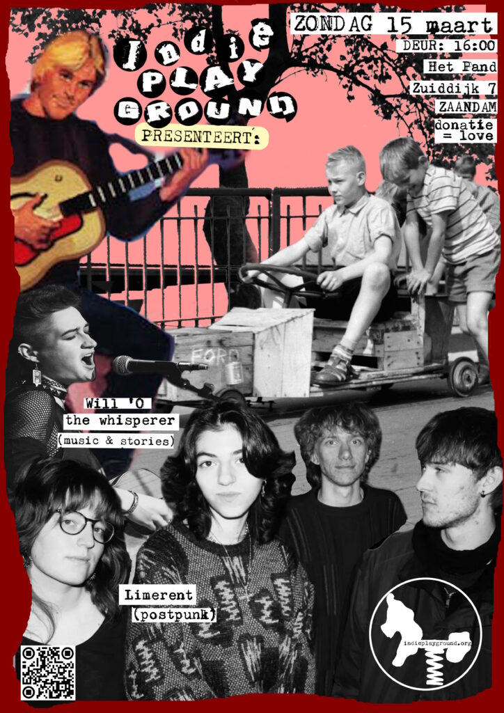 | A G E N D A 15 maa 16:00 PAND – Will O’ The Whisperer (Music & Stories) + Limerent (postpunk) 29 maa 16:00 PAND – Sound Of The Underground Preparty (SOTU-festival) 12 apr 16:00 PAND – De Mis (postpunk) + KrachtStroom (garagepunk) 10 mei 16:00 PAND – Thor Kissing + Mark Lotterman + Tino 07 jun 16:00 PAND – The Mono Kids (garagepunk)+ Fac 191 (postpunk) 28 jun 16:00 PAND – Supermarkt (noise punk) + Snackbar (fem-front punk) + Lily Clarisa (poetry) Locatie: Het Pand – Zuiddijk 7 ZAANDAM De Kade – Dam 8 ZAANDAM |